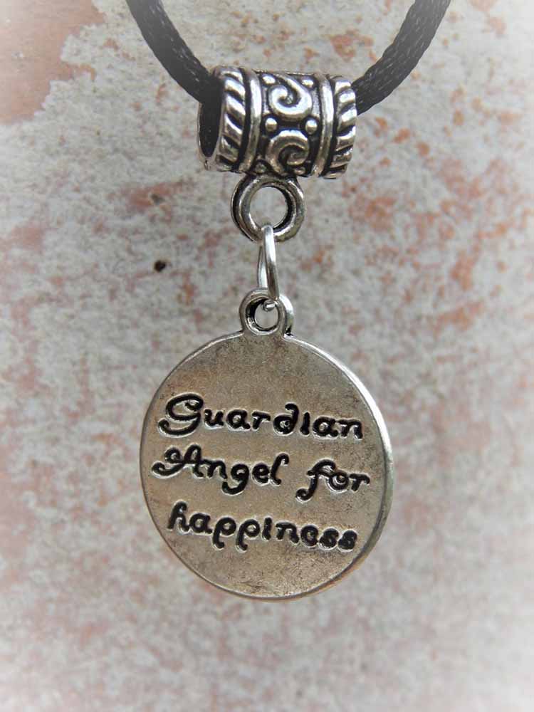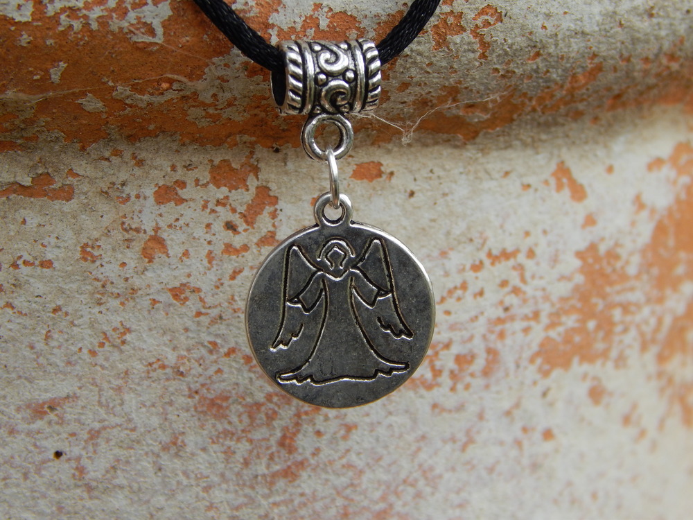 Guardian Angel pendant with black satin chord and clip fastening Pendant drop 38mm Free UK postage